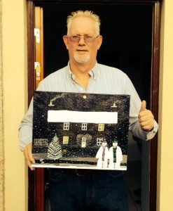 This week I got Jim and Jeans first picture finished ” Our House”. One down one to go plus getting their Christmas cards sorted. We met and caught up and their lovely personalised commission painting is now on the wall of their home.